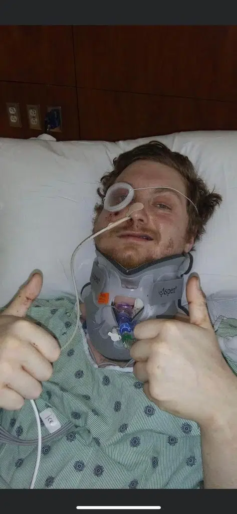 His jaw was wired shut. He spent two weeks in the hospital. But he recovered–he calls it a miracle.