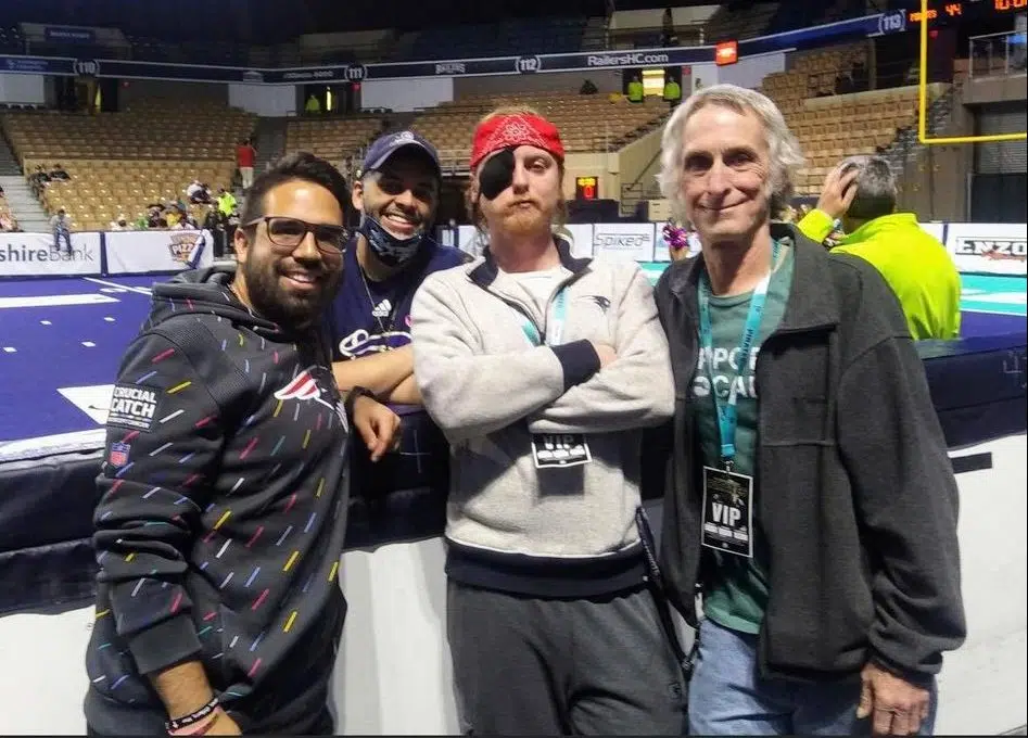 Mulligan as a guest of the Massachusetts Pirates Arena Football Team. The Pirates were a team staying at the Oneida Casino Complex on the night of the shooting, and honored Mulligan–a Massachusetts resident himself–this year. (Dan Mulligan)