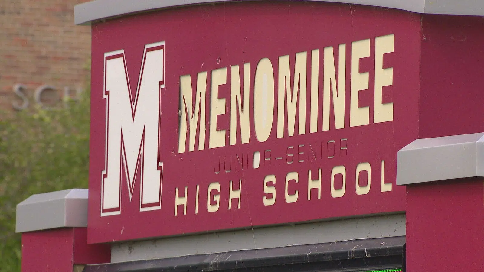 Menominee Junior-Senior High School sign is seen Sept. 15, 2022. PC: Fox 11 Online