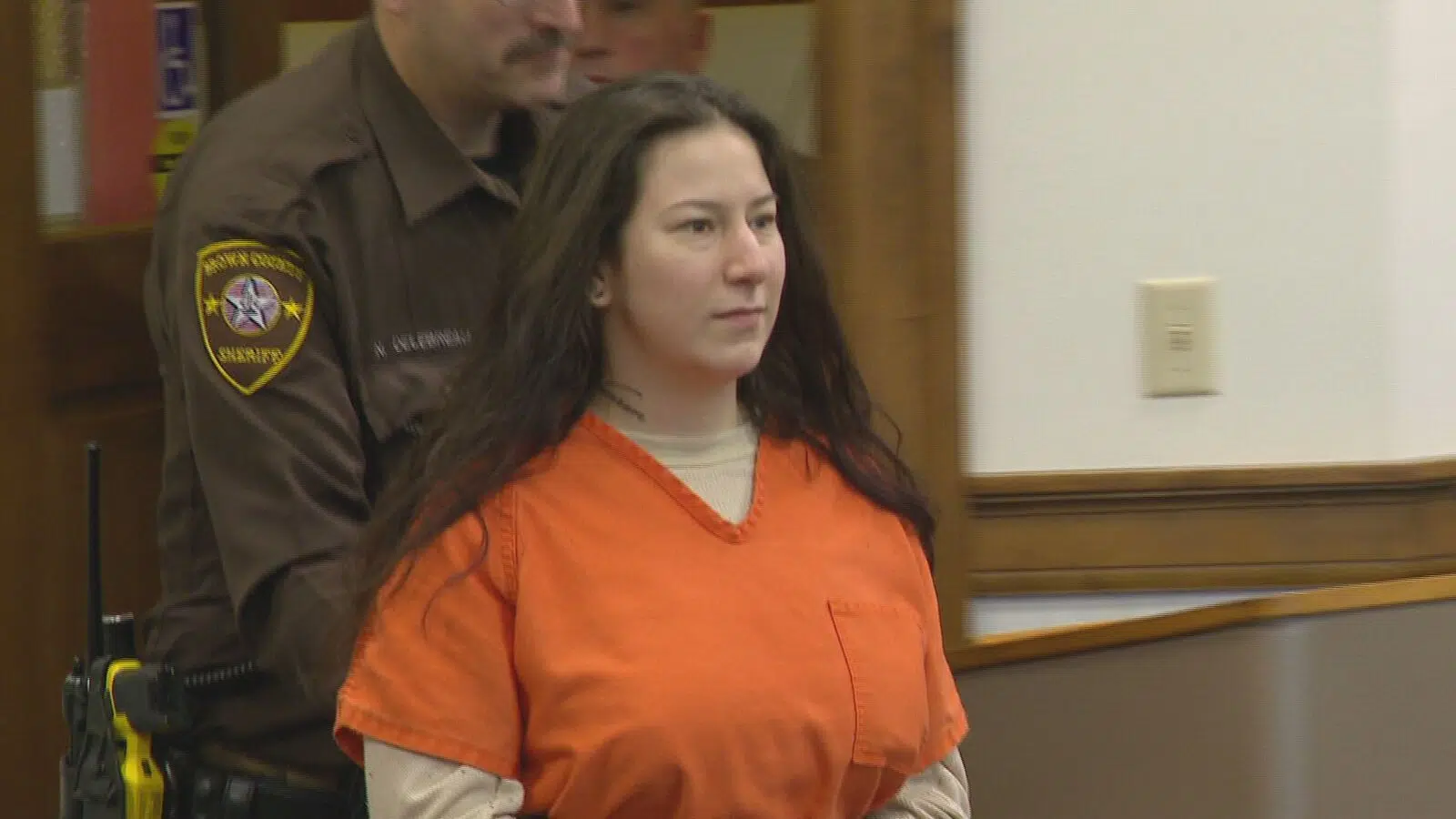 Taylor Schabusiness enters a Brown County courtroom Feb. 3, 2023. PC: Fox 11 Online