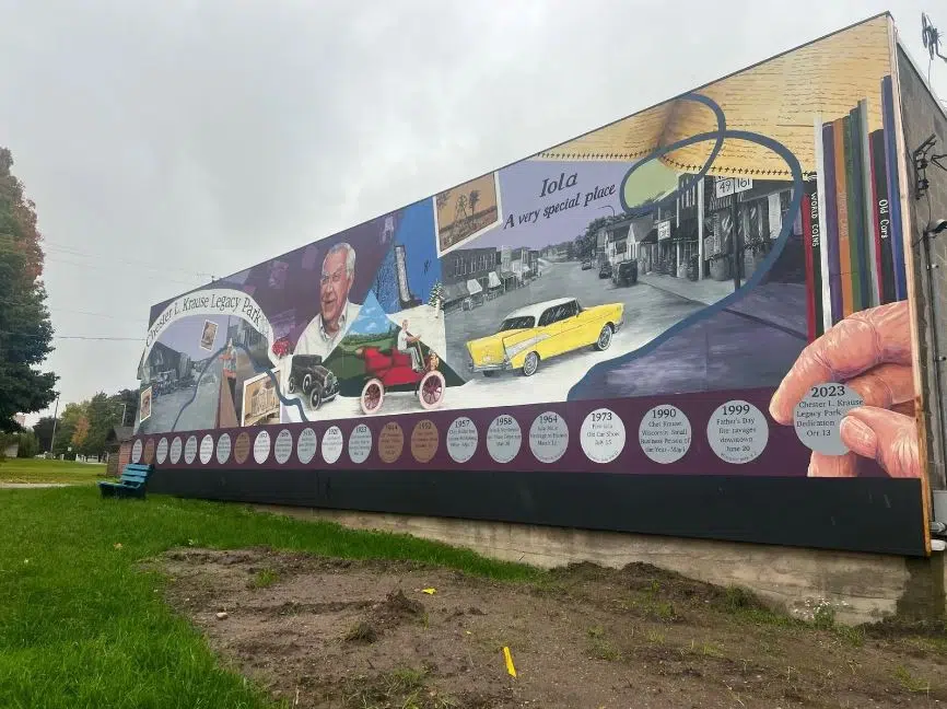 The park features a large mural which has paintings of Krause himself, cars and old Iola. A large statue of Krause was unveiled at the ceremony, which will stand in the park. The mural also includes a timeline, highlighting important events that happened in the village’s history.