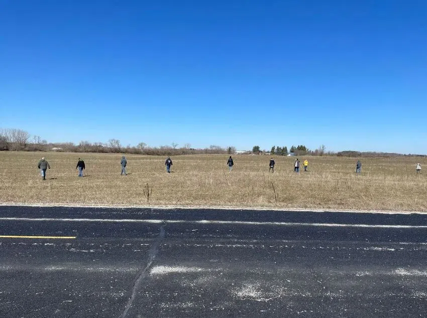 Volunteers search Avery's Auto Salvage in Manitowoc County April 8, 2024, looking for missing 3-year-old Elijah Vue. PC: Fox 11 Online
