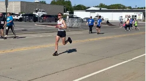 Menasha native Kathy VanDehy was first to cross the finish line in the women’s marathon.