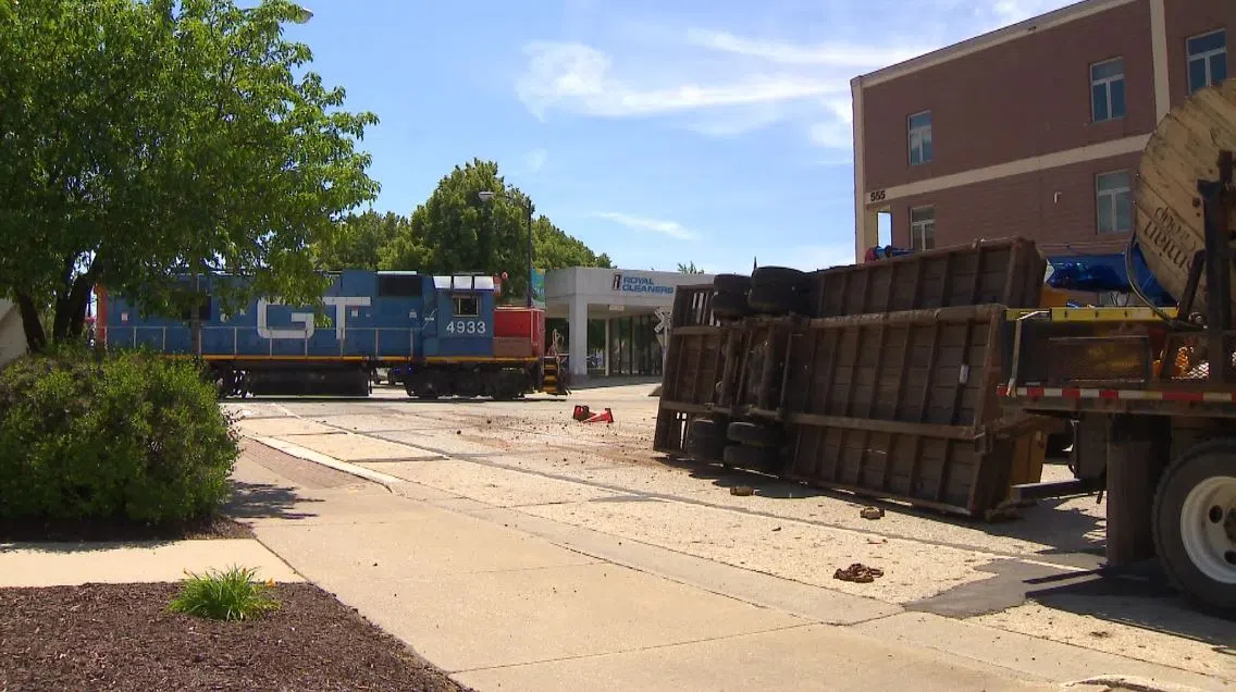 Police say the truck with a trailer hauling a tractor was driving westbound on Main Avenue and the train was going southbound. The truck was unable to stop for the train and as the truck tried to go around the train, it is believed the train made contact with the trailer, causing it to flip on its side.