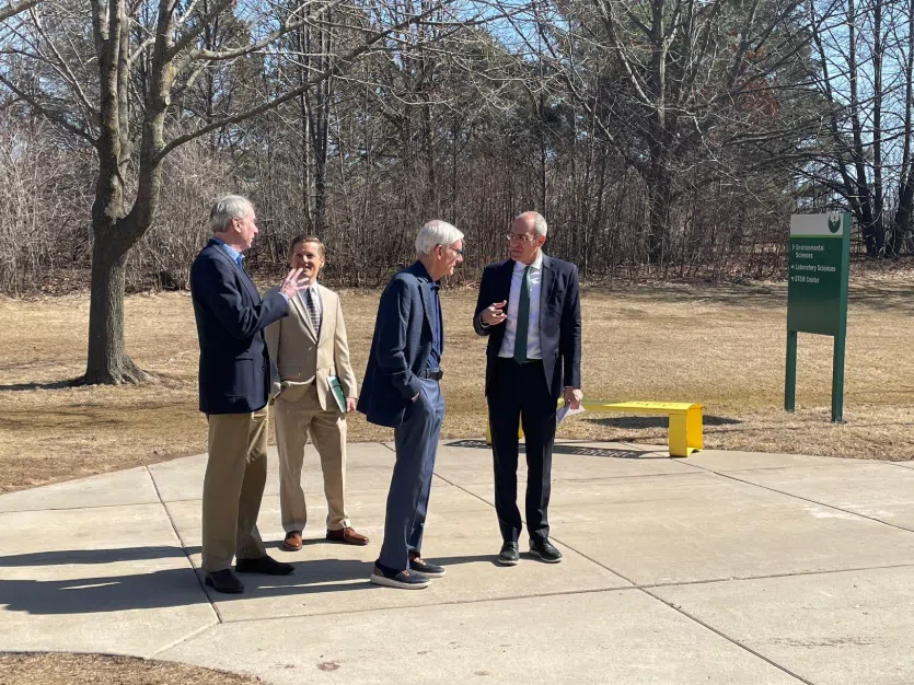 Democratic Wisconsin Governor Tony Evers speaks with UW-Green Bay Chancellor Michael Alexander on the UWGB campus on Tuesday, March 11, 2025. PC: Fox 11 Online