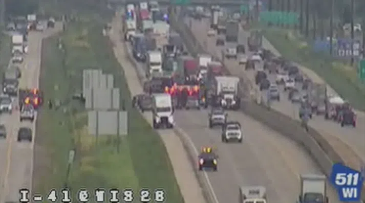 A three-vehicle crash closed southbound lanes of I-41 in Oshkosh, July 23, 2025. (WisDOT)