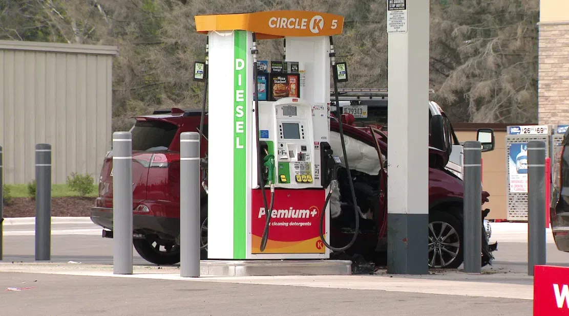 Officials believe an SUV traveling eastbound on W. Northland crossed into the westbound lanes, entered the gas station parking lot and struck a pole.