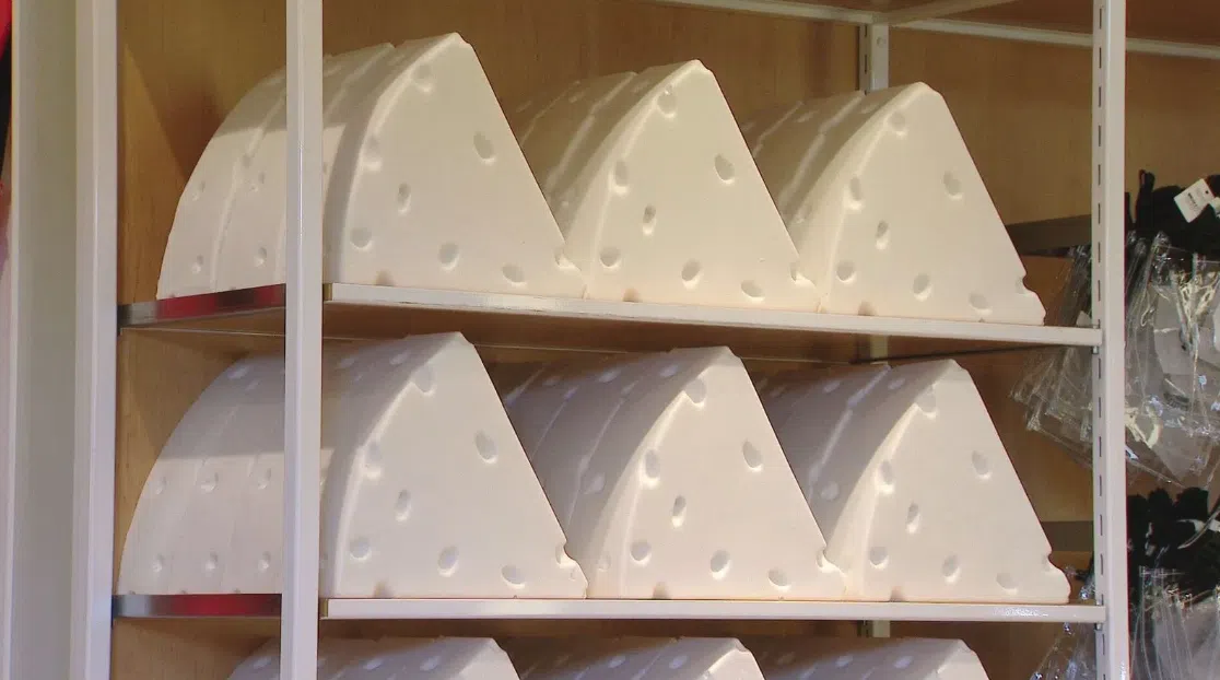 White cheeseheads are available at the Packers Pro Shop in honor of the team's "Winter Warning" game at Lambeau Field this week, Sept. 8, 2025. PC: Fox 11 Online