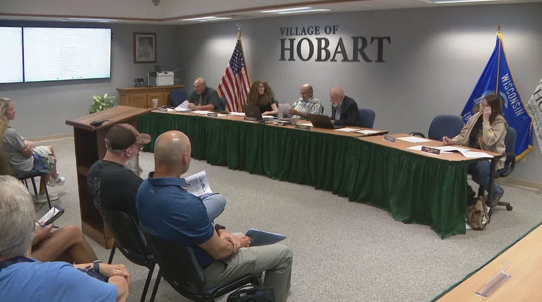 Hobart Village Board addressing community at meeting, Sep. 16, 2025. PC: Fox 11 Online
